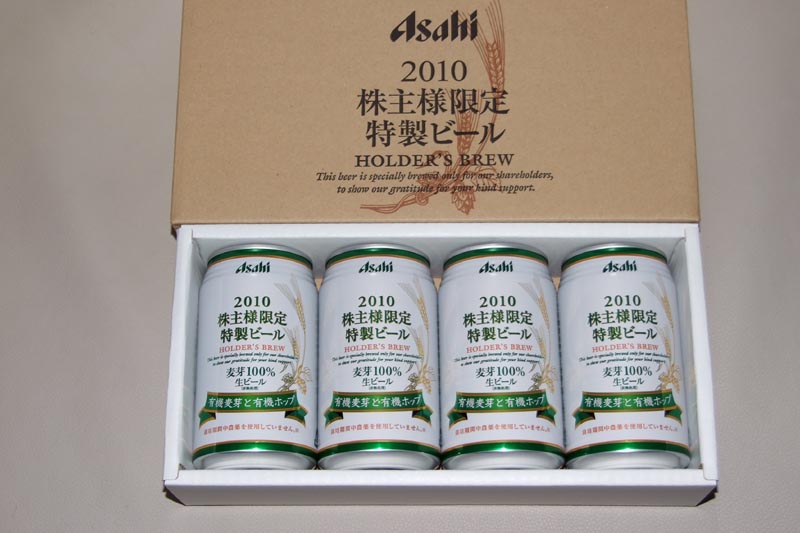 (写真は、100株以上 1,000円相当の株主様限定特製ビール)