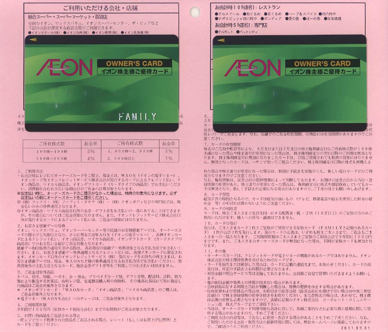 ※ カードは、株主ご本人さまカード1枚・ご家族カード1枚の合計2枚発行。
