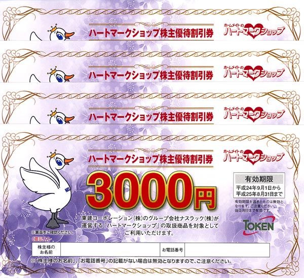 選択したハートマークショップ3,000円分の優待割引券が