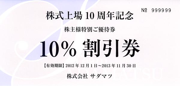 (3)上場10周年記念優待券(10%割引券)