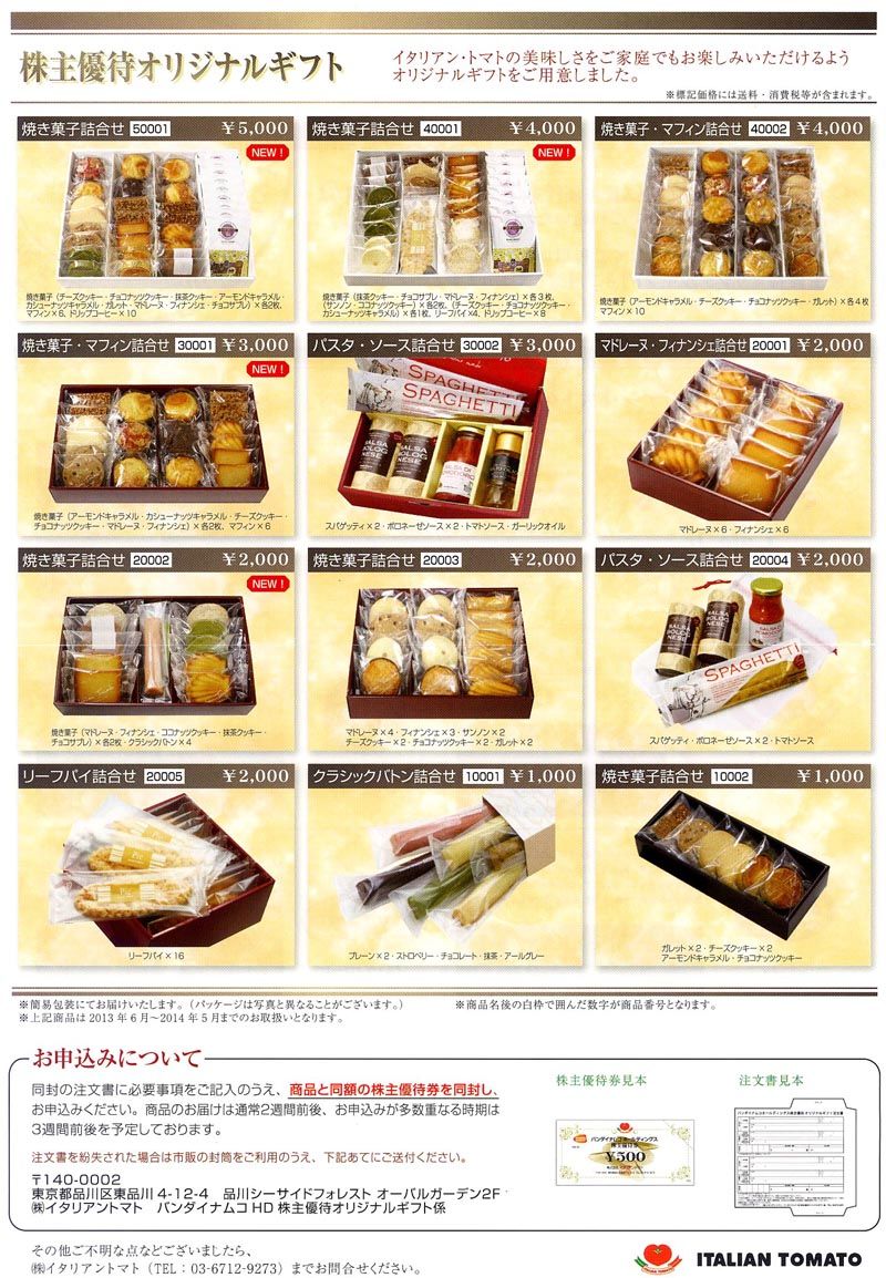 2013年3月末現在の株主様への優待品