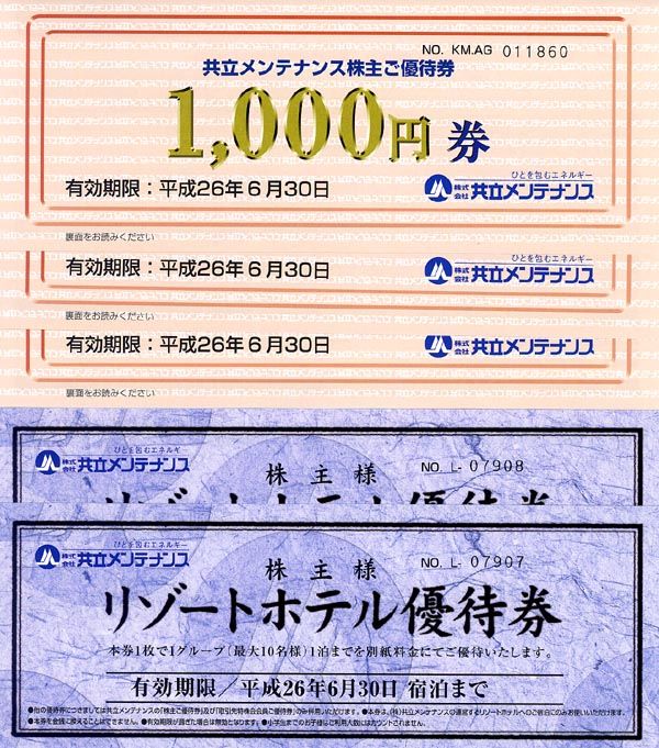 1,000株以上 3枚 1枚 1枚 1枚