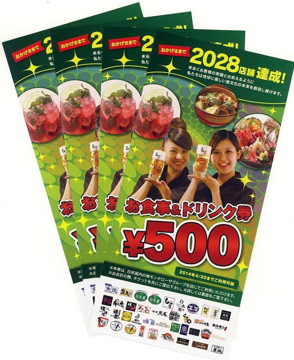 1回の買い物(同一物品を複数個はOK)につき、優待券を1枚または