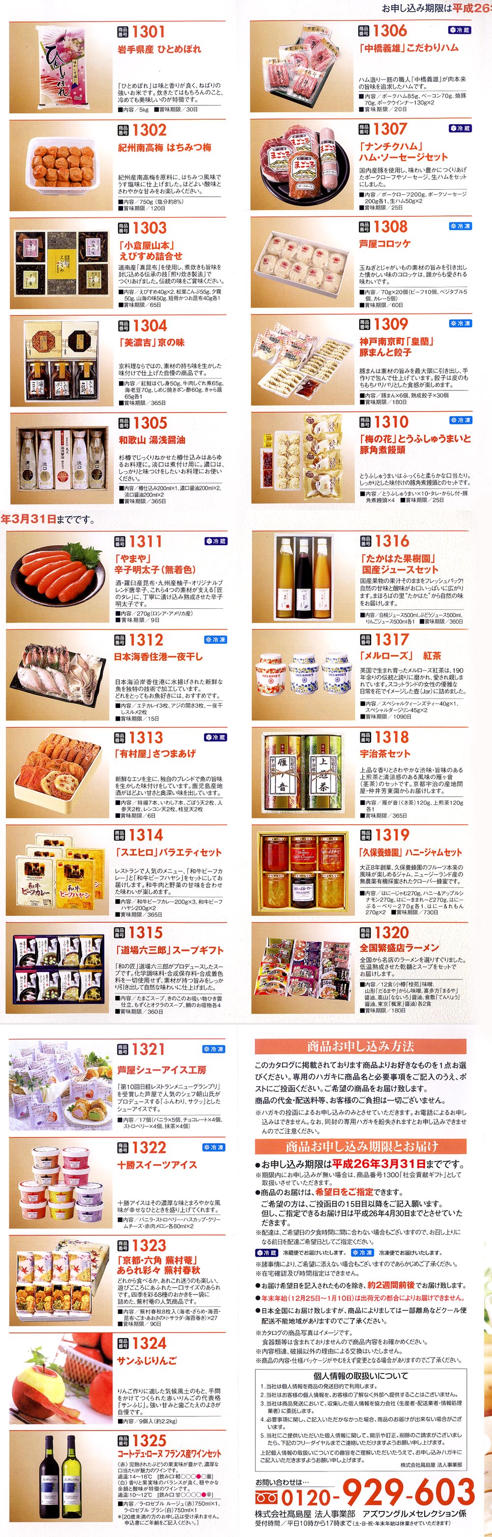 2,000円相当の「ギフトカタログ」の最後のページにあった、