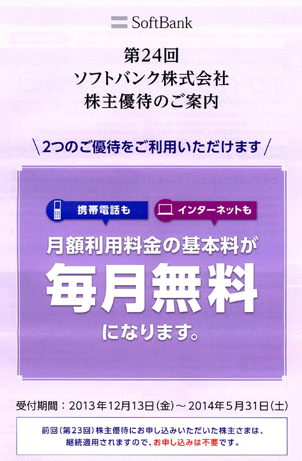 1.ソフトバンク携帯電話株主優待