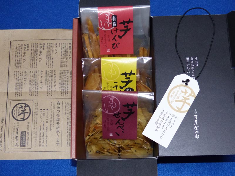 お土産は、芋屋金次郎の「おつかいもの簡易箱 」【小袋3袋入り】(800円)