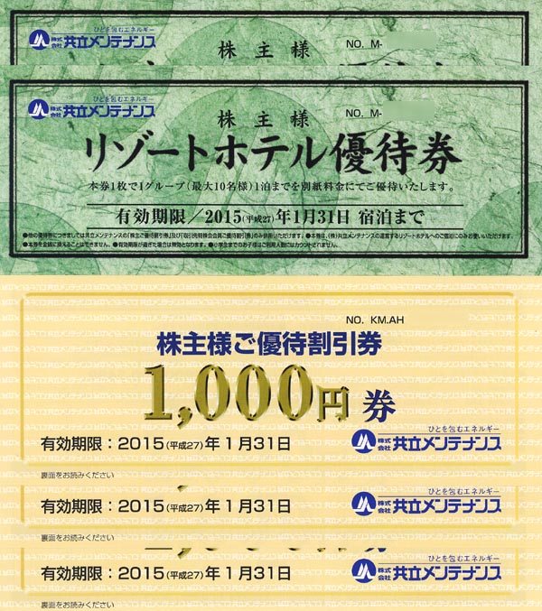 ※株主優待券枚数 : 1回3,000円(税込)×3枚