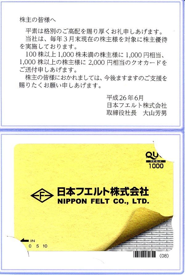 1年以上記載)の株主は上記に加えて以下のとおりクオカードを進呈