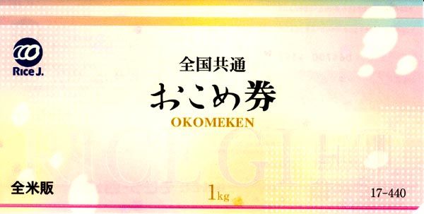 ※ 全国の農協、スーパー、デパート、米穀販売店にて、1枚当たり1kg440円のお米と交換できます。