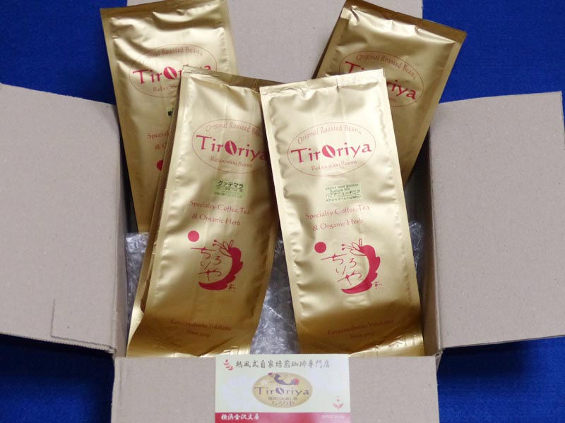 町屋ブレンド×100g、パプアニューギニアブヌン・ウー農園シティ×100g、グァテマラフロレンシア農園シティ×100g、ブラジルフレンチ×100g