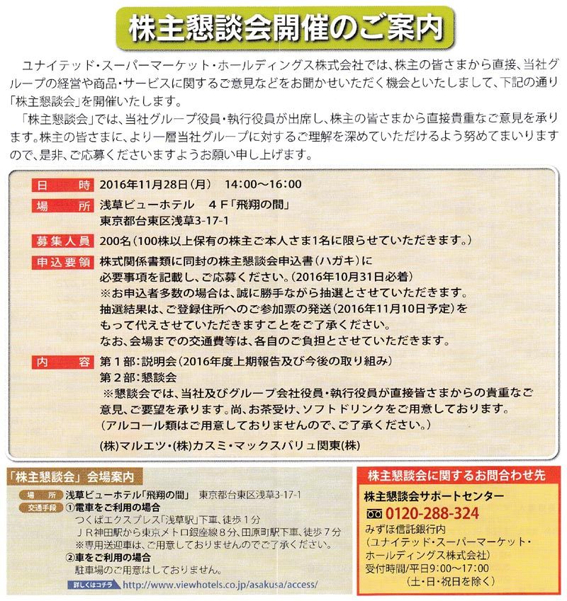 [3222]ユナイテッド・スーパーマーケット・ホールディングス 株主優待