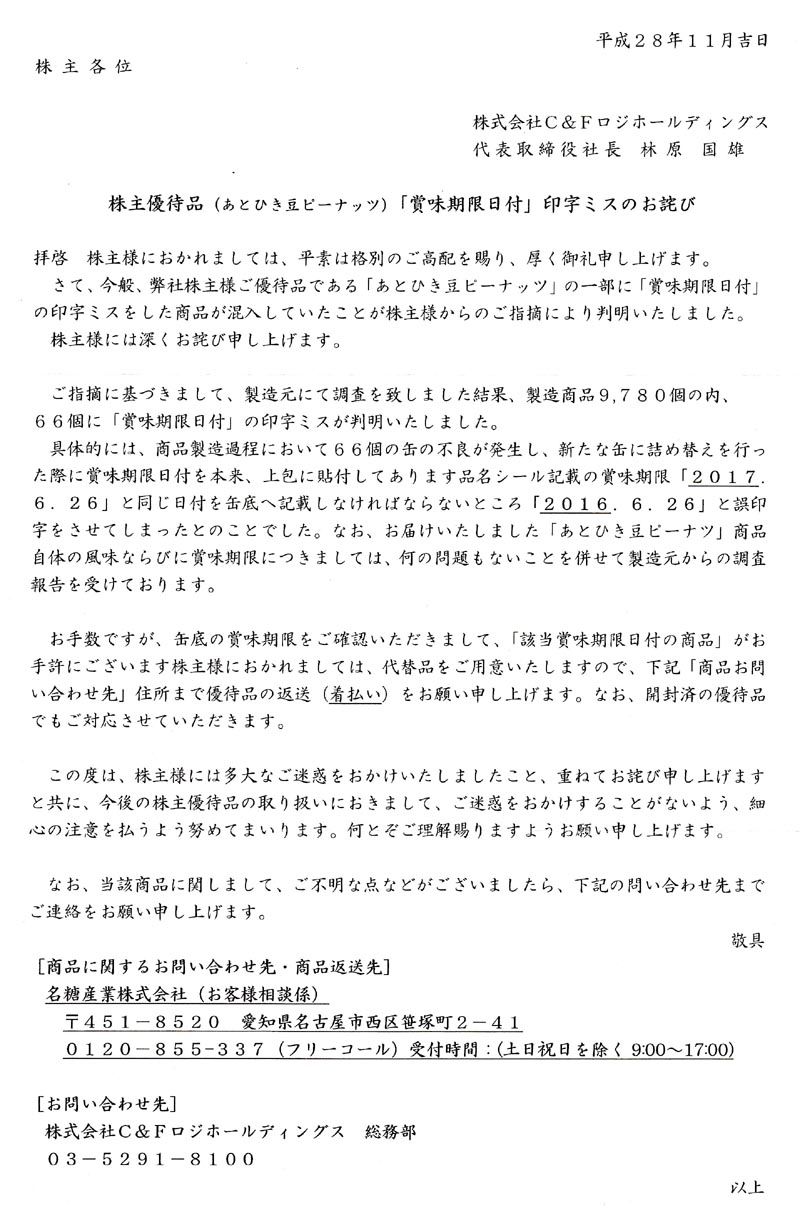 10·î¤Ë͹Á÷¤µ¤ì¤¿¡Ö¤¢¤È¤Ò¤Æ¦¥Ô¡¼¥Ê¥Ã¥Ä¡×¤Î°ìÉô¡Ê66´Ì¡Ë¤Ë¡¢¾ÞÌ£´ü¸Â¤Î°õ»ú¥ß¥¹¤¬¤¢¤Ã¤¿¤½¤¦¤Ç¡¢³ºÅöÀ½ÉʤϿ©¤Ù¤¿¤¢¤È¤Ç¤â¡¢¸ò´¹¤·¤Æ¤¯¤ì¤ë¤½¤¦¤Ç¤¹¡£