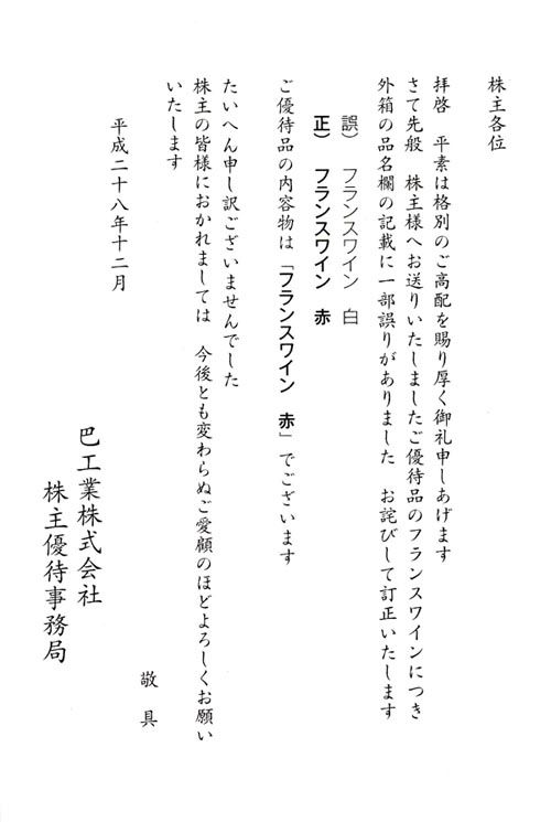 [6309]巴工業 株主優待