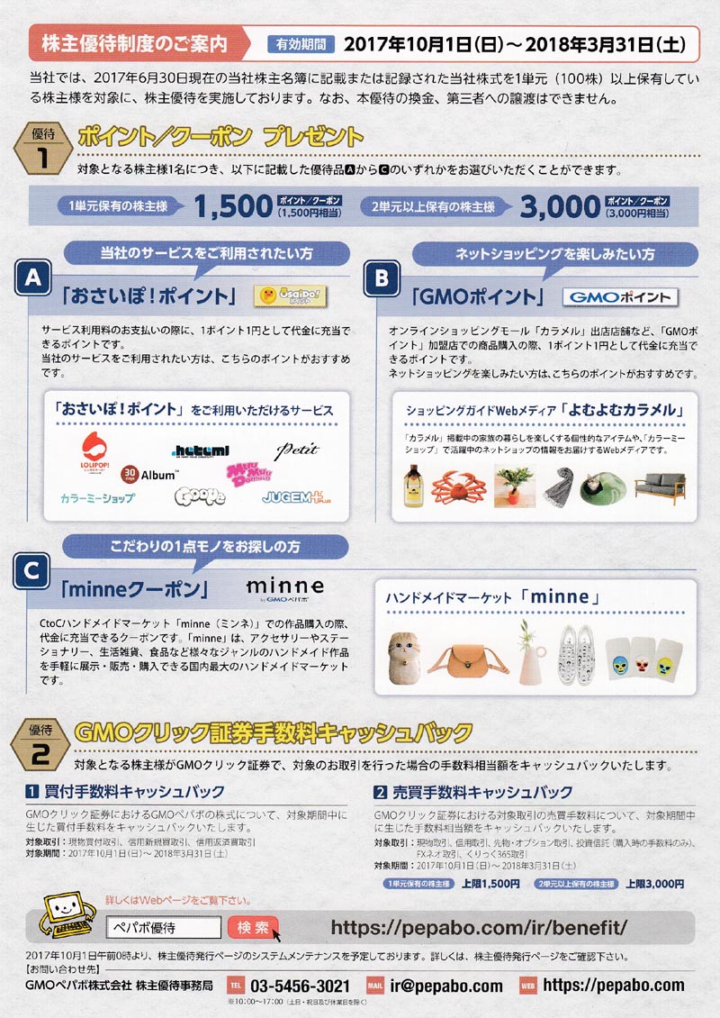 [3633]GMOペパボ 株主優待