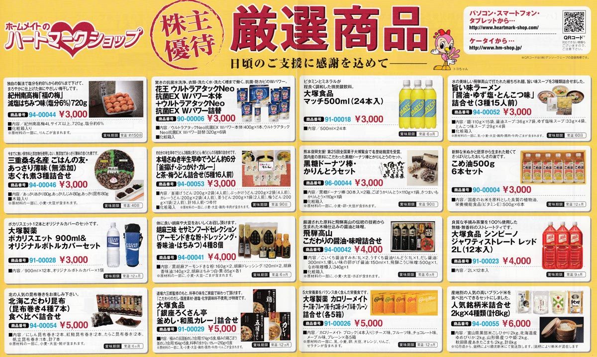 1,000株以上 3,000円相当の自社製品詰め合わせ