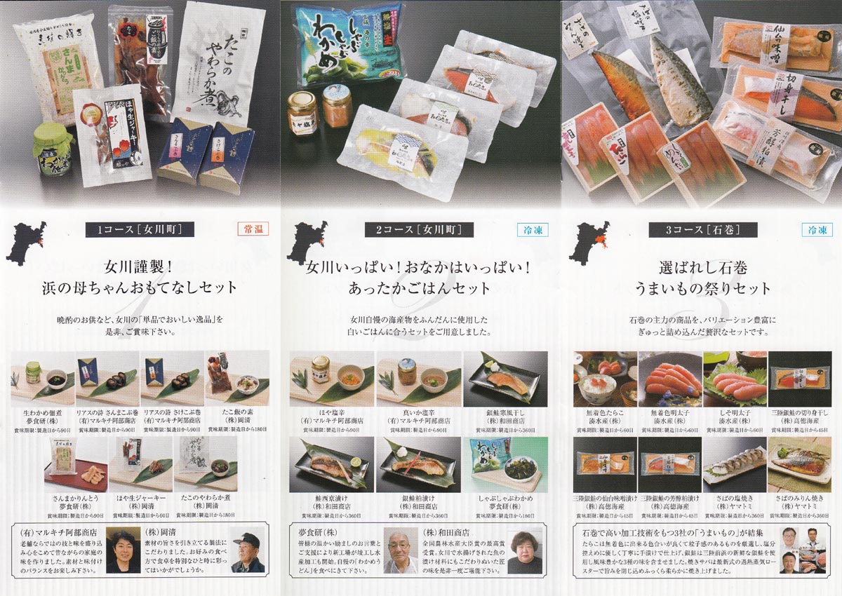 「復幸まちづくり女川」推奨の地域物産品及び地域復興マッチング「結の場」からの商品