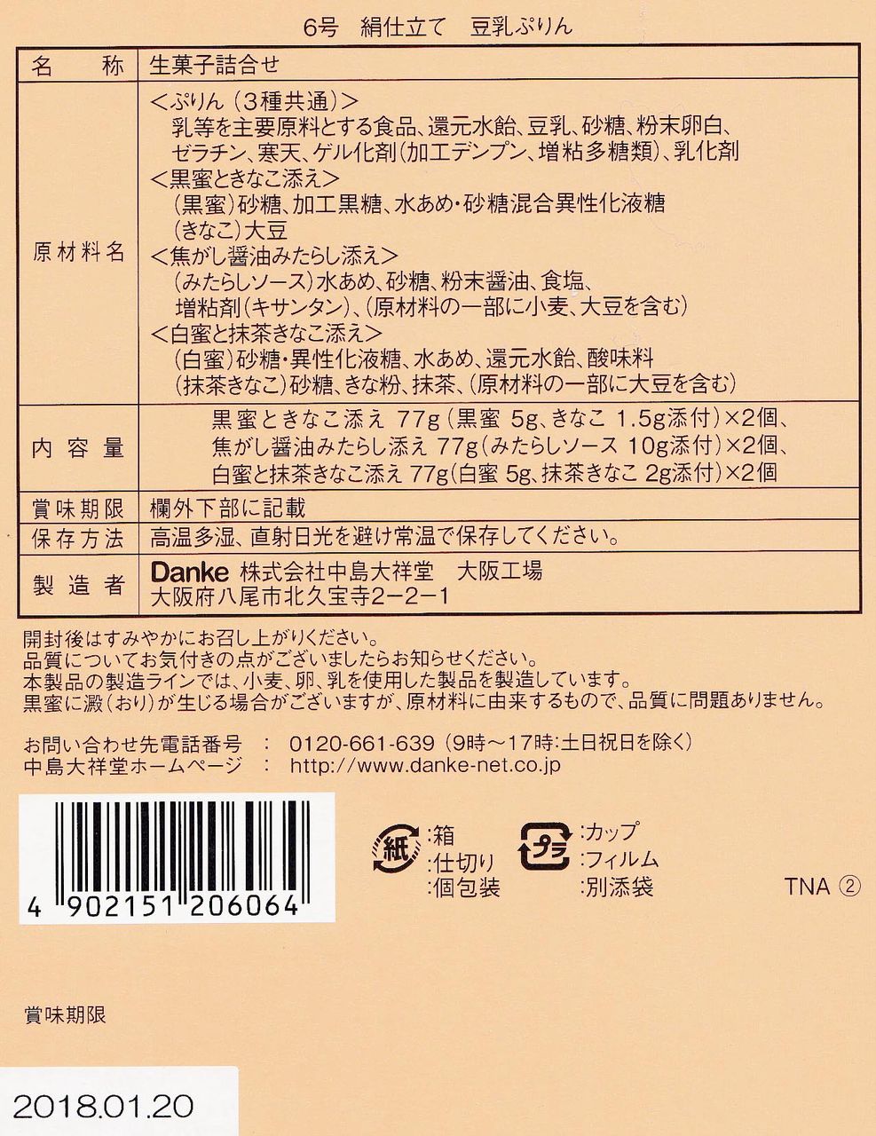 お土産は、個室居酒屋「月の雫」で出している豆乳プリン(6個入り1,620円)でした。