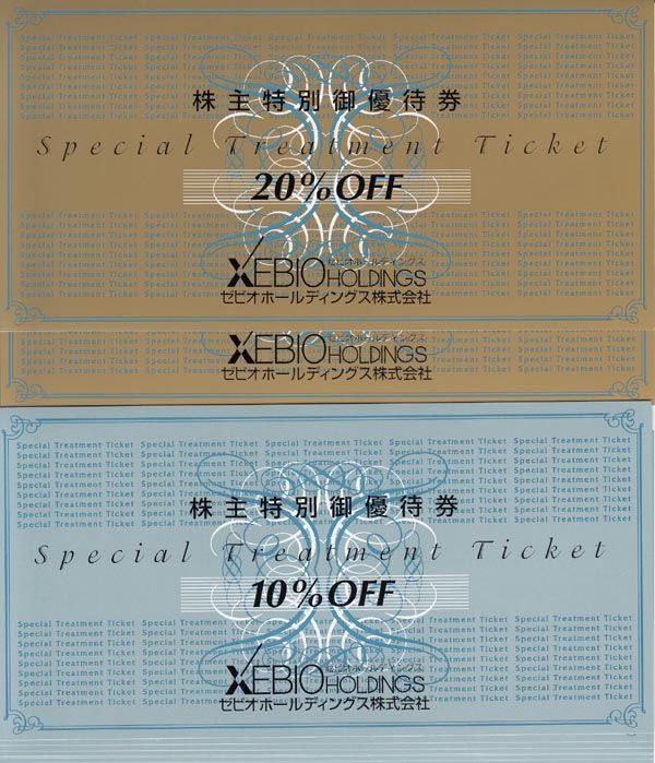 1,000株以上:20%割引券 2枚/10%割引券 8枚