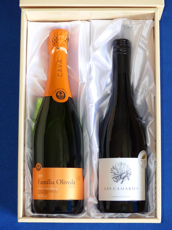 株主様お食事ご優待券1セット(5,000円分)の返送で、金賞受賞スパークリング&赤ワインセットが届きました。