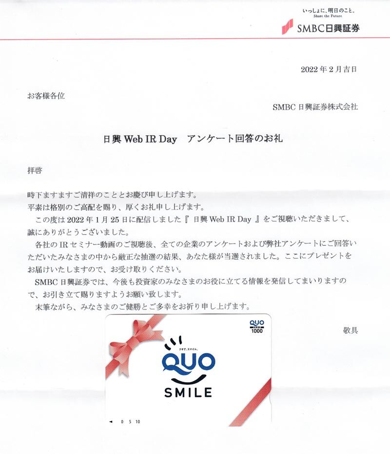 ¡Î8316¡Ï·Ï¡¡SMBCÆü¶½¾Ú·ô¡¡Quo¥«¡¼¥ÉÅöÁª