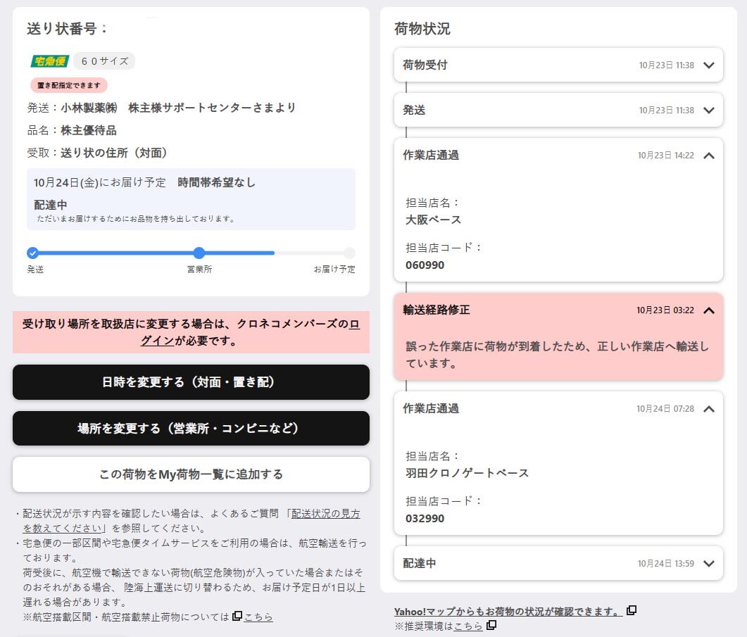 ¤Þ¤¿¤Þ¤¿¡¢¥¯¥í¥Í¥³¤ÎÇÛÁ÷¥ß¥¹¤Ç¤¹¡£ºë¶Ì¸©Æâ¤Î´Ö°ã¤Ã¤¿Éð¢Ìî¥Ù¡¼¥¹¤Ë²Ùʪ¤¬¹Ô¤Ã¤Æ¤·¤Þ¤Ã¤¿¤¿¤á¡¢°ìöÅìµþ±©ÅĤËÌᤷ¤Æ¤«¤é¤ÎºÆÇÛÁ÷¤Ë¤Ê¤ê¤Þ¤·¤¿¡£