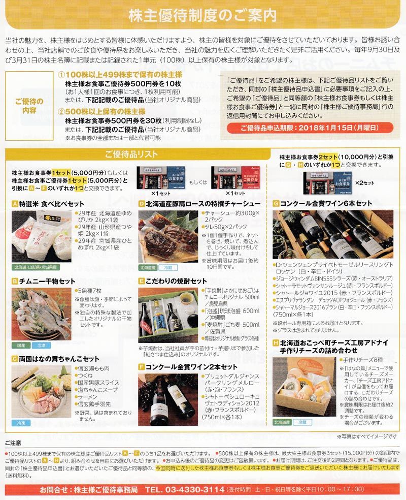 [3178]チムニー 株主優待