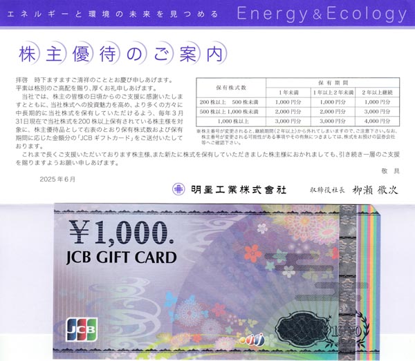 1,000株以上:保有期間1年未満:3,000円分/1年以上:3,000円分/2年以上:4,000円分