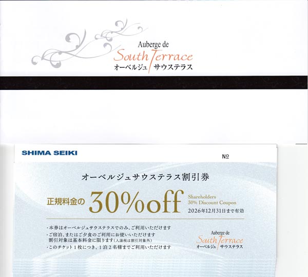 ・オーベルジュサウステラス割引券 8枚(正規料金の30%引)