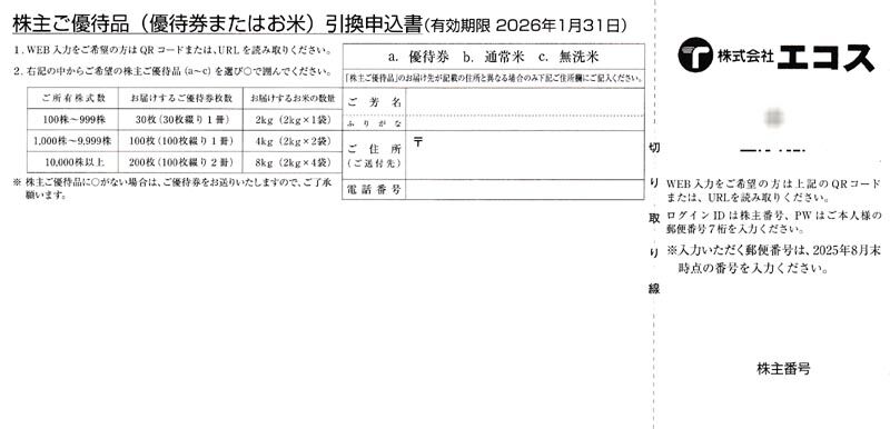 [7520]エコス 株主優待選択