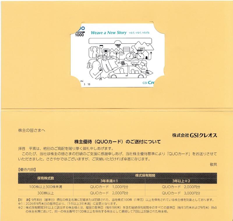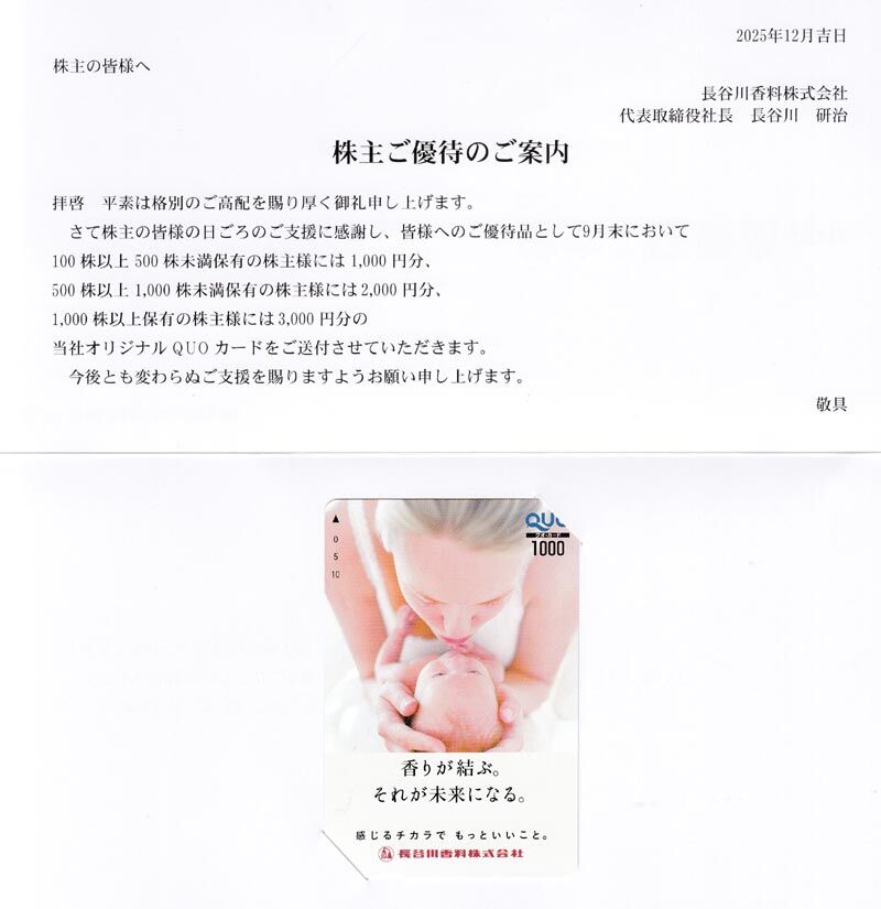¤ªÏͤӤȤ·¤Æ300±ß¤ÎQuo¥«¡¼¥É¤¬ÆÏ¤¤Þ¤·¤¿¤¬¡¢3ǯ°Ê¾å·Ñ³ÊÝͤγô¼ç¤Ë¤Ï500±ß¤ÎQuo¥«¡¼¥É¤¬ÆÏ¤¤¤¿¤½¤¦¤Ç¤¹¡£