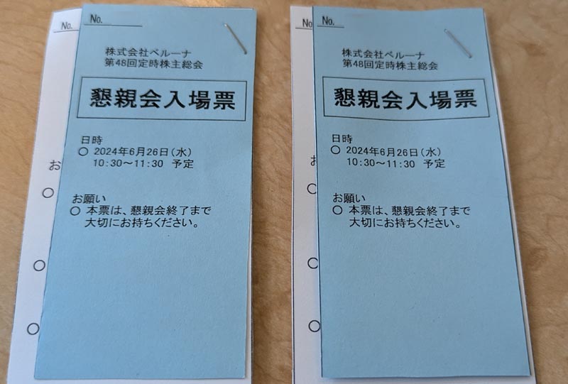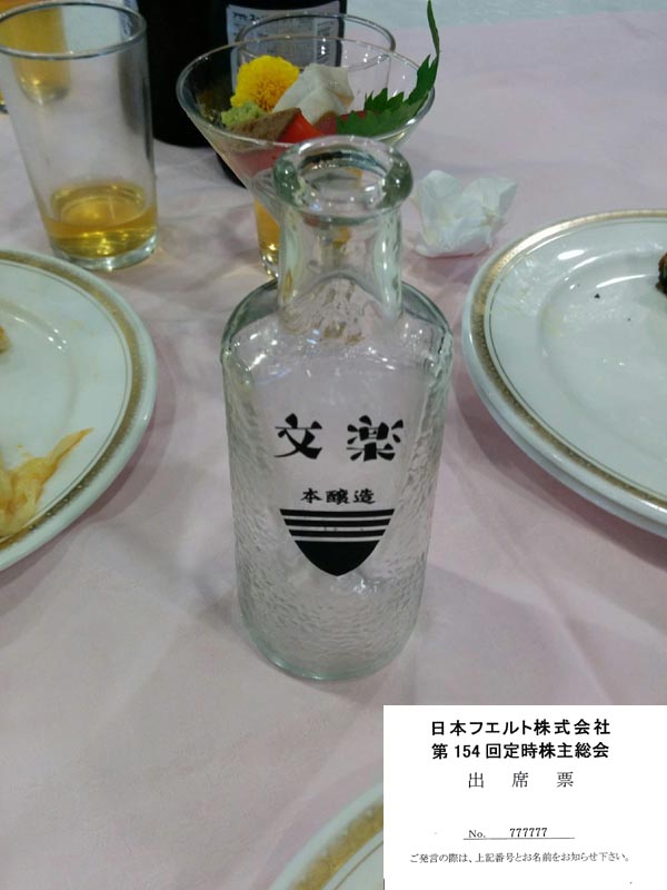 受付時に戴く入場票は、半券方式ではないので、いちいち担当者がボールペンで議決権行使書に出席番号を転記するというローテク総会。