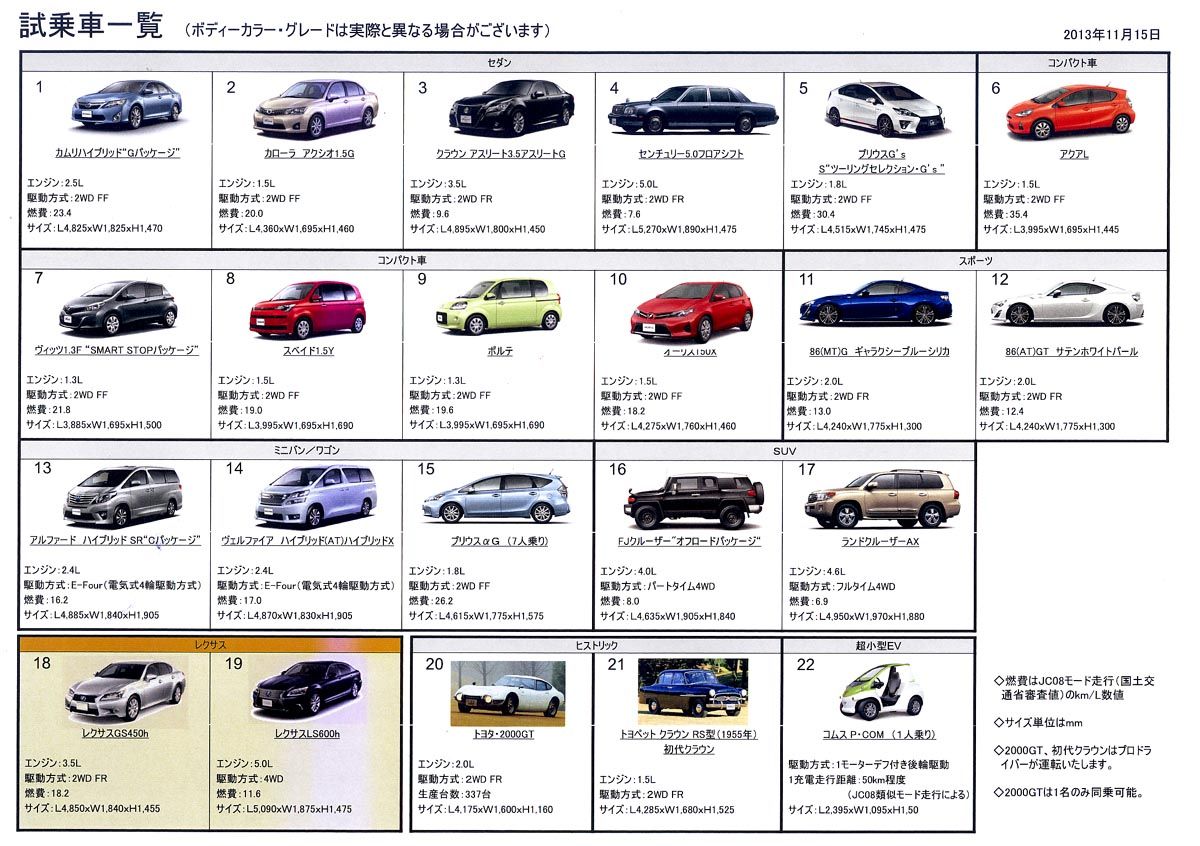 車はこちらから選べます。早い者勝ちです。価値の高いクラシックカーは、プロドライバーの運転で、同乗だけになります。とりあえず、レクサスLS600hを運転してみました。