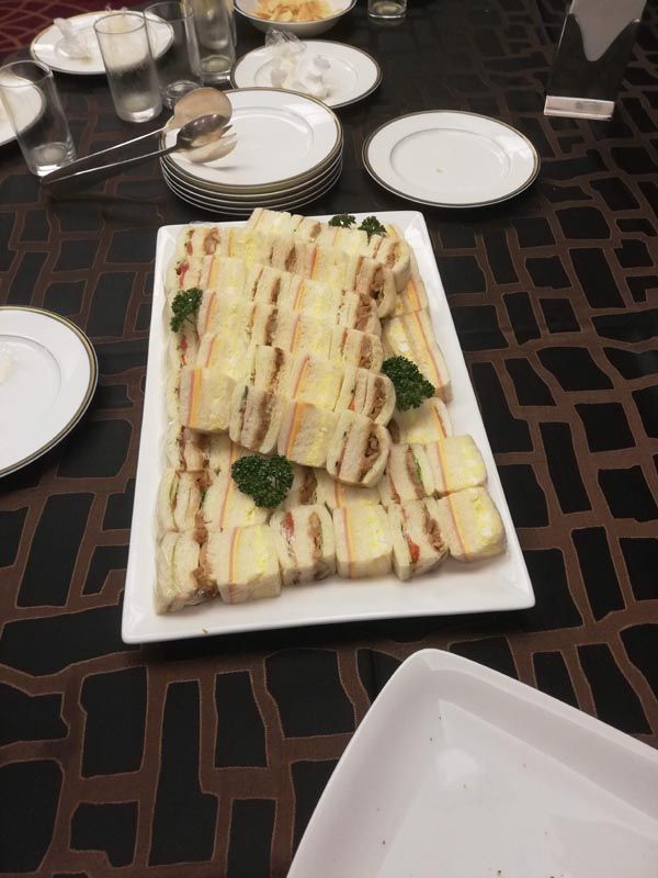 懇親会は、隣の部屋で時間がたって乾いてしまったサンドイッチとエビアンが入った