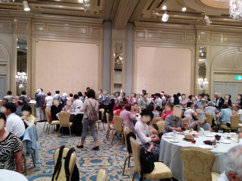 ダンゴ現象を起こして一向に上がって来ないエレベータで15階のホールへ移動し、懇親会会場へ。